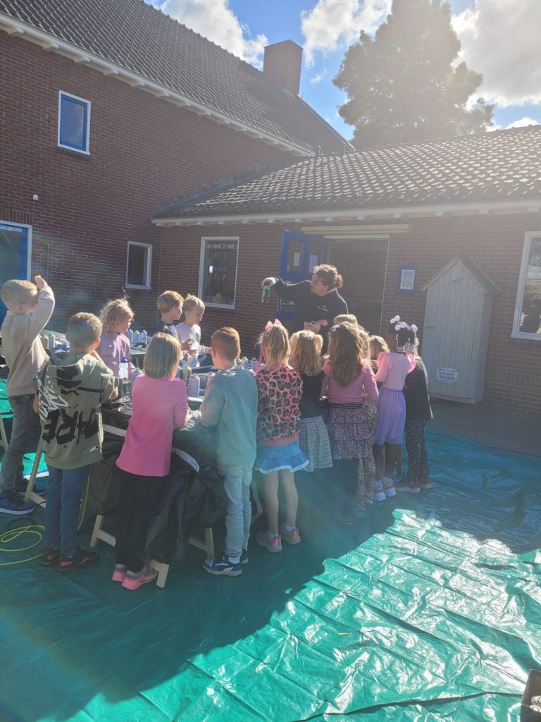 Het resultaat? Een dag vol binnenpretjes, verfspetters en een groepskunstwerk dat net zo wild is als jullie.