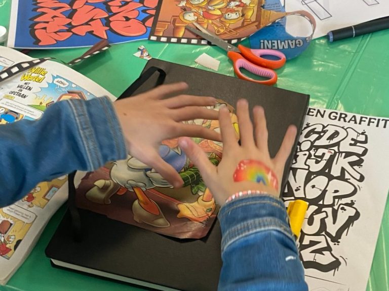 Of het nu gaat om een eenmalige workshop, een serie lessen of een groot buurtproject: ik denk mee over inhoud, thema’s en praktische invulling. We kunnen ook samen een permanente muurschildering maken, ontworpen door jongeren zelf.
