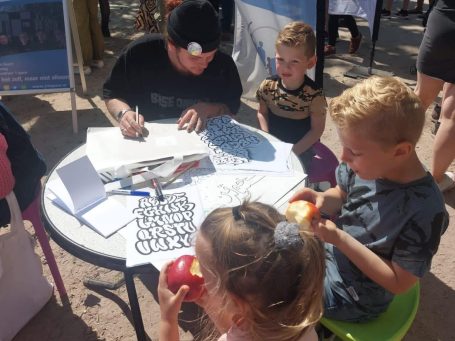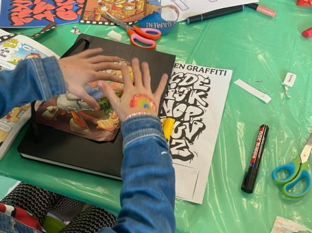 Kinderen leren op een speelse manier de basis van graffiti en maken hun eigen kunstwerk om mee naar huis te nemen.