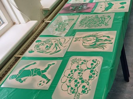 🖌️ werken met stencils en sjablonen om een eigen ontwerp te maken.