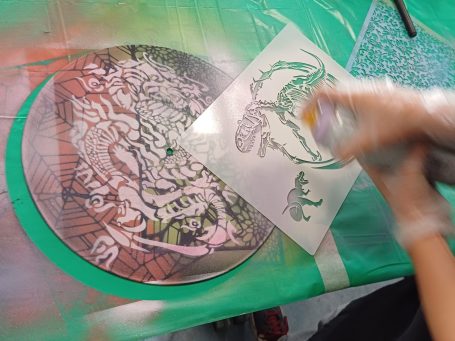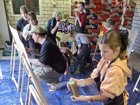 Tijdens de workshops krijgt iedereen een korte uitleg over het gebruik van de spuitbussen en veiligheid.