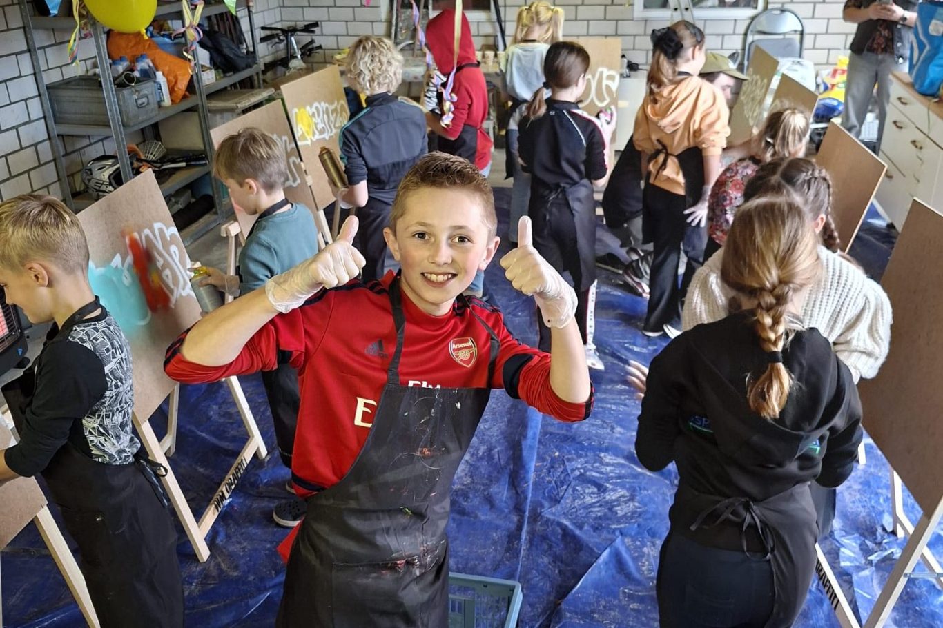 Vier een creatief kinderfeestje met graffiti, compleet met professionele begeleiding en materialen.