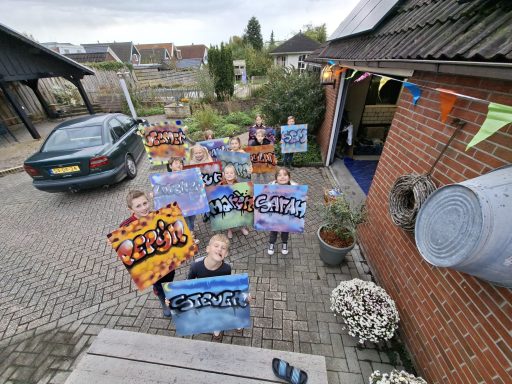 Een graffiti-feestje is niet zomaar knutselen – het is een ervaring vol zelfvertrouwen en samenwerking. Kinderen leren hun creativiteit te gebruiken, hun ideeën te delen en trots te zijn op wat ze hebben gemaakt. Het mooiste moment? Als iedereen aan het eind zijn eigen kunstwerk bewondert – met een grote glimlach natuurlijk.