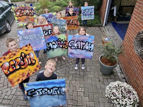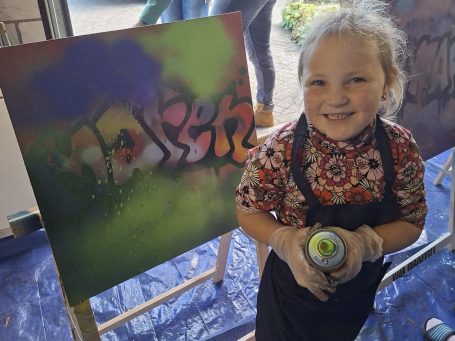 Tijdens een graffiti-feestje leren kinderen stap voor stap hoe ze met veilige materialen hun eigen kunstwerk kunnen maken. Er zijn veel leuke mogelijkheden: