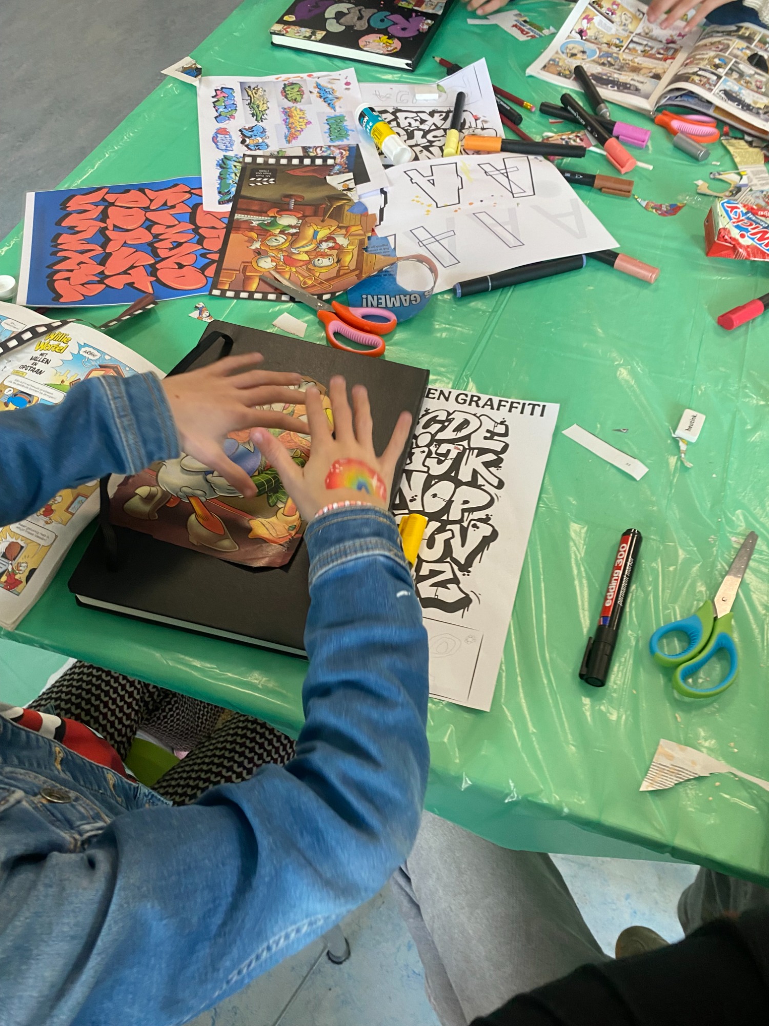 Leerlingen ontdekken hun eigen creatieve stem en leren samenwerken via graffiti en street art. veilig, positief en met trots.