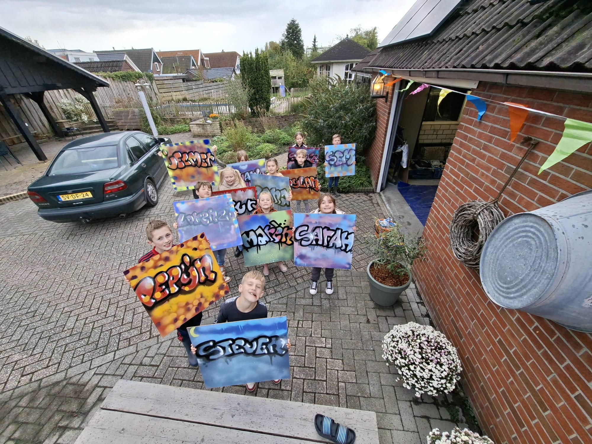 Vier een creatief kinderfeestje met graffiti, compleet met professionele begeleiding en materialen.